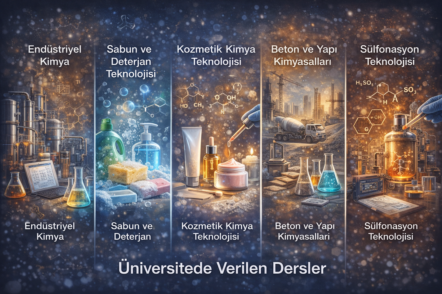 Üniversitede yürütülen dersler; endüstriyel kimya, kozmetik teknolojileri, yapı kimyasalları ve proses odaklı mühendislik uygulamalarını kapsar.